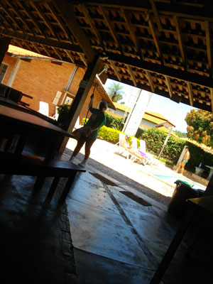 とにかく、今日は、動き回ることはせず、一日おとなしくネット作業でもすることにした。あぁ、動かしたくても、動かない。プールがあるのに、入れない・・・という嘆きは置いておいて、宿には風通しのよい机スペースがあり、作業するには最適な環境。サルバドール、ブラジリア生活を経て、収集した情報をいろいろまとめなきゃいけない、と思っていたところではあったので、いい機会。と、やり始めたら、一日作業となってしまった。ボニートをブラブラしながら、やってたら、一週間くらいはかかる作業内容だったかも・・・ひょっとして、神様が、この作業日を作るために、わざわざオイラに怪我させたのだろうか、なんて思ってみる。