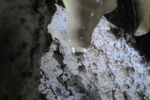 自転車に乗ると、左ひざに痛みはこない。ただ、相変わらず右手首には激痛が走るため、右手は添えるだけ。ほぼ左手でコントロール。ウォッシュボードの若干ガタガタする道に苦戦するも、1時間半ほどで到着。早速、中へ。車で到着したツアーの客の中にまぎれて、洞窟に突入。ちなみに、ヘルメット着用義務がある。頭のデカイオイラ、ヘルメットが入らない・・・