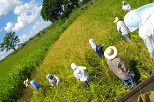 待望の昼飯後、待っていた午後の作業は、昨日刈り残した稲の収穫。再び大人数で二台の車で昨日の田んぼに向かい、刈り込み作業開始。刈り残してたのは、田んぼの3分の1くらいの領域だったこともあり、今日の刈り込み作業はあっという間に終了。それでも、肉体的には相当ハードな作業でしたゼイ。