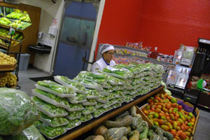 最初の店に到着した頃、ようやく空が明るくなりはじめた。ここで、ジョンというブラジル人と合流。街での配達作業を手伝ってくれるらしい。オクラ、グァバ、パイナップル、レモン、カボチャ、唐辛子・・・次々と店に運び込んでいく。スーパーの裏搬入口から入り、納品する野菜&果物の個数および重さを確認してもらった後、そのまま野菜売りコーナーに持っていって、並べる作業を始める。配達作業って、商品をスーパーに運び込むだけではなく、売り場でのディスプレイ作業も自分達でやるのだ。キレイに商品を並べていく、ダイゴ、ヨシさん、ジョン。一つ一つの作業を戸惑いながらやっているオイラ、とりあえず、売り場まですべてのケースを持っていったら、まず、パイナップル並べをすることになった。前回の残りとか、黄色く熟れているパイナップルを前にして、新しく持ってきたパイナップルで、まだ青いのは奥に置く・・・まぁ並べ方にもいろいろコツがあるのですな。こういう作業をすると、販売側の気持ちが分かるようになって、興味深い。一消費者となったとき、賢い商品の選び方が出来るようになるような気がします。