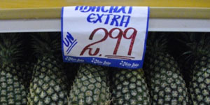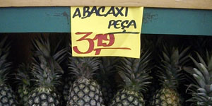 そして、おなじパイナップルを卸しているというのに、スーパーによって値段設定が違うというのが、これまた興味深かった。ある店では2.99レアルなのに、別の店では3.19レアル。安い値段の店の方が、残りのパイナップルの量が少なかったのは・・・やっぱりみなさん、安い店を知っているってことなんでしょうかね。