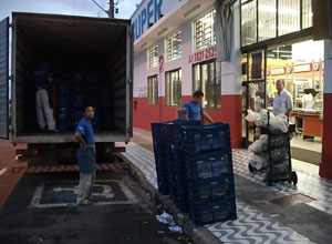 今日も、配達作業のため、朝3時に起床。配達は週に二回、火曜日と木曜日にやるのだ。前回で大体の段取りをつかんだオイラ、積極的に、トラックにケースを運び込む。