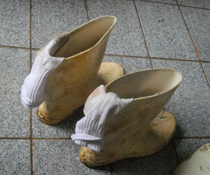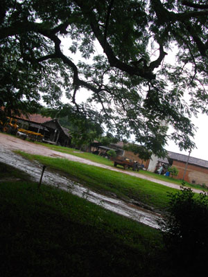 ここんところ、毎日のように夜中に雨がふるものの、朝になったら大抵雨があがっていた空模様だったのだが、今日は、朝起きてもシトシトと降り止まない雨。作業着の上に雨カッパを羽織って朝の仕事に出ようとしたところ、とりあえず、雨がやむまで部屋で待機とのこと。おぉ、雨による仕事休みは、オイラが弓場に訪問して初めてのコト。働きづめの毎日だっただけに、この待機休憩はちと嬉しい。
