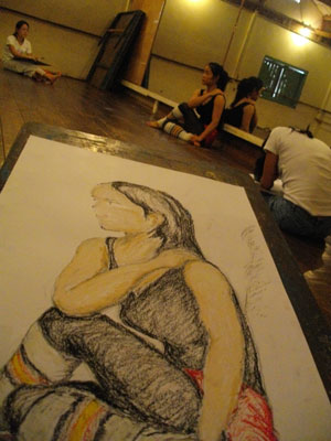 今度こそ、寝てしまえばと思っていたのだが、エンミさんから14時半過ぎからお絵かき教室があるのでよかったら参加してみない?と誘いを受けたんだけど行ってみませんか?とレン君が言ってきまして。このままダラダラと雨止み待ちをするのもなんなので、お絵かき教室に参加することにしたのでした。14時半過ぎ、バレエ小屋に行くと次々と集まってくる弓場の子供達。オイラも交じって画用紙と画板とクレヨンを貸してもらう。本日のお絵かきテーマは、人物描写とのこと。ミエちゃんをモデルに絵を書くことになったのでした。