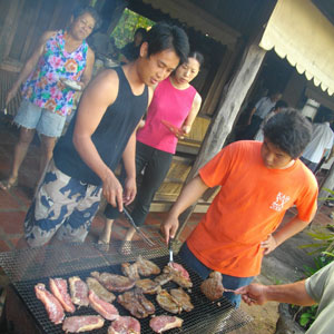 朝飯を食べたら、日曜日恒例の日記書き開始。ここ二、三日、天気が悪かったため、農作業休みを使って、何日か分の日記は書くことができたんだけど・・・残りの日記を書いていたら、午前中が終了。11時になる角笛の音色に呼ばれ、昼ごはん。今日の昼食は、食堂前でシュラスコ。復活祭(イースター)明け?のため豪勢に牛肉ステーキが焼かれているようですが・・・相変わらずキリスト教の行事にうといオイラ。とにかく美味しい肉が食えて満足、満足。