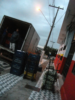 配達準備を終え、そろそろ日が上る時間に最初の街のスーパーマーケットに到着するも、やはり寒い。今までだったら、長袖ジャージを一枚羽織れば、十分だったのに、今日はジャージ一枚では寒すぎる。風のあたらないトラックの中に居ないとちょっと耐えられない寒さだ。