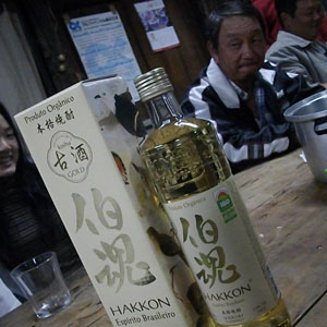 そして、そのまま、今日の晩酌開始。アサイーとレモンを混ぜたジュースがあったので、本日は、ピンガをそのジュースで割ってみた。結構いける。そして、さらに、ミルクティーがあったので、これまたピンガをミルクティーで割ってみた。なんか、カルーアミルクみたいな味がして、いけてた。さらに、今日は、ブラジルの焼酎なるものが出てきた。その名も<伯魂>。ブラジルの魂って・・・芋であるマンジョッカの焼酎とのことで、日本の芋焼酎の味を期待したんだけど、あんまり芋っぽい味はしなかったなぁ・・・