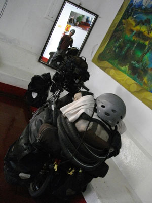 自転車旅でも6時起床。弓場の時と変わらない朝時間です。さて、ブラジルでホテルに泊まると、大抵朝飯カフェがついてくるようです。ユースホステルだけなのかなと思っていたら、普通のホテルでもカフェ・ド・マニュアナといって、コーヒーにパン、ハム、チーズといった軽食が用意されている。25レアルの安宿のこのホテルでもしっかりとカフェ・ド・マニュアナは用意されてまして。まぁあくまで軽食なんで、みなさん、パン一個と果物程度で済ませているようなのですが、そこはチャリダーのオイラ、ガッツリ腹いっぱいいただくのでした。