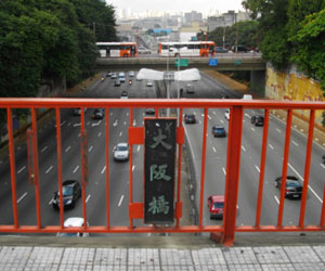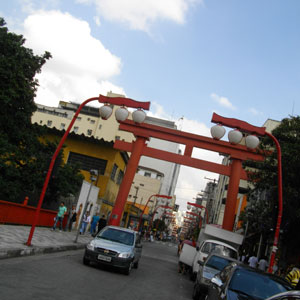 軽く興奮しながら、地下鉄に乗り、サンジョワキン駅到着。そこで、久々にレン君と再会。ラーメンを一緒に食べにいって腹ごしらえをした後、サンパウロの街を散策することにした。最初に歩いたのは、日系人街としては、世界一の規模を誇るというリベルダージ。ここを歩いていると、すれ違うのは、日本人の顔立ちをした人ばかり。もちろん、ブラジリアンもいっぱい居るのだが、海外で道を歩いていてこんなにも日本人的な人たちとすれ違うのは珍しいので、そちらばかりに目がいってしまう。ここは日本では?という錯覚すら覚えてしまう。そして、目の前に見えてきたのは赤い鳥居。そして<大阪橋>と書かれた看板が下げられている橋。この辺にある店の名前は日本語っぽいし、中に入ると、日本食材、日本の調味料、日本のお菓子がズラリと並べられている。う~ん、オイラ的には、ズラリと並べられた日本のお菓子、チョコレート菓子やら、せんべい菓子やらを見たときに、日本への郷愁を一番感じてしまったのであった。郷愁を感じたのがお菓子なんてねぇ・・・鳥居とか日本語表記は、パラグアイ以降いろんなところで見ることが出来て、ここんところ見慣れちゃっているからなぁ。その点、こんな量並べられた日本のお菓子は、海外で見ることなんてできないッスから。とにかく圧倒されちゃったんですよ。