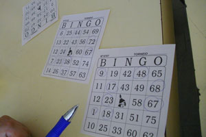食事の後、チャリティーでビンゴ大会が開催される。ホンワカムードの中食事会終了。ご飯をいただいたお礼に、部屋の後片付けはバッチリお手伝いさせていただきましたよ、ハイ。