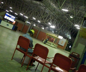 バヘリーニャスまではサンルイスの長距離バスターミナルからバスが出ているという。ここ空港から長距離バスターミナルまでは・・・今の時間タクシーしかない。しょうがないので、タクシーで移動。到着した長距離バスターミナルは、空港とは違って、寂しい雰囲気。この時間、バスの発着はまったくなく、おそらく朝一のバス待ちらしいお客が数人いる程度。ここで働いていると思われるおじちゃんに、バヘリーニャス行きのバスの時刻を聞いてみると、朝一番のバスが6時だという。ん~、だったら、空港で時間をつぶしていたほうがよかったかなぁ・・・ここは人がいなさすぎで、ちょっと怖い雰囲気が・・・まぁ、来てしまったものはしょうがない。またもや、3時間ほど時間をもてあそぶことに。荷物を抱えているので、眠いけど眠れない。あぁ、なんだか辛い待ち時間だ。