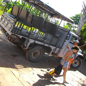 2時半にサンルイスの空港に到着。空港ロビーへ降り立つとムゥとする熱風に包まれる。肌寒かったリオとは大違い。飛行機で一気に飛んできたのを実感する。それにしても、こんな夜中だというのに、空港は意外と人でいっぱい。さてさて、オイラがサンルイスに来たのは、サンルイスの近くにあるという<レンソイス・マラニャンセス国立公園>に行くため。近くといってもサンルイスからバスで4時間くらいかかる距離にある。サンルイスからのツアーもあるらしいのだが、バヘリーニャスという町が、レンソイス・マラニャンセスへの最寄の観光入り口となるらしい。ということで、サンルイスは通過して、このままバヘリーニャスまで行くことにした。