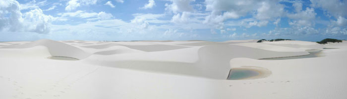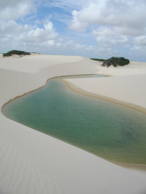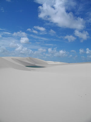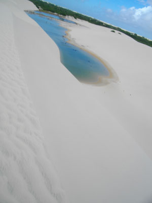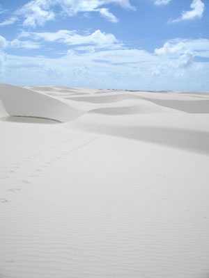 昨日まで快晴続きだったのに、今日はちょいと曇気味。せっかく歩いてレンソイス・マラニャンセス国立公園まで行く日なのにぃ・・・と軽くしょげていたのだが、結果的にはこの曇に助けられまして。いや、砂丘を歩くのにほどよい感じだったのですよ。午後から太陽が覗いたんですが、そうなっちゃうと、砂が熱すぎて、歩けない。