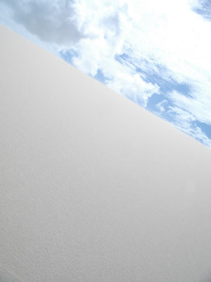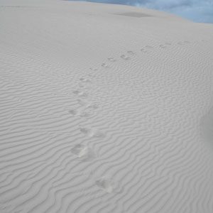 やはり1時間ほどかかって辿り着いた砂丘への入り口。早速砂丘を上る。ここからひたすら白い砂地が続く。それにしても・・・誰もいない。白い砂地に刻まれるのは、オイラの足跡だけ。この雄大な風景を独り占めしている優越感ときたら。そうそう、途中、人とは出会わないのですが、鹿(?)の群れに遭遇。彼らはこんな砂丘地帯に住んでいるのだろうか?