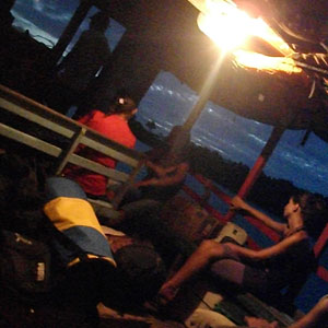 そして、15時の船に乗り、バヘリーニャスへと戻る。今日はちゃんと定期船が出ていた。来る時には、ツアーのスピードボードで1時間ほどで到達した川。今回は上りとはいえ・・・定期船である貨物船では4時間の船旅でした。バヘリーニャスに到着する頃には、すっかり真っ暗。
