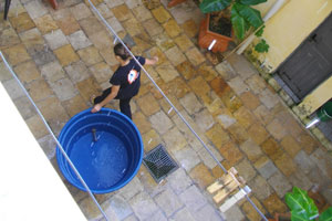 サンルイスは、今日も朝から雨。こっちの方の雨は、降り始めたら滝のような雨になる。なので、あっという間に水が溜まるらしく、雨が降り出したら、宿の中庭に、でっかいバケツを置いていた。