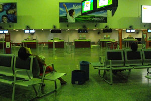 そして夕刻、パソコン作業も飽きたので、かなり早いが、空港に向かうことに。バスに乗って空港まで行こうと思ったのだが、空港行きのバスがなかなか見つからない。やっとのことでオバちゃんに教えてもらい、乗ったバスも、運転手に聞いたら「このバスは空港へは行かないよ。長距離バスターミナルにはいくけど」と。えぇ~、オバちゃんに、エアポートに行きたいって言ったはずなのに・・・しょうがないので、長距離バスターミナルで降りる。もちろん、ここからもバスはあるはずなのだが、周囲も真っ暗だし、めんどくさくなっちゃったので、ここからはタクシーに頼る。13レアルも払って、タクシーで空港へ。