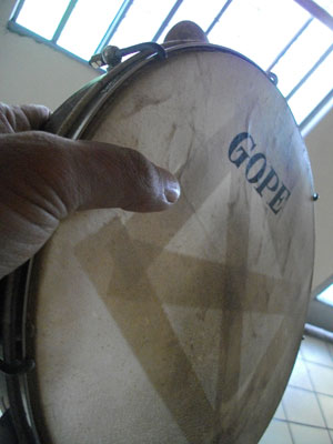 というのも、ちょいとやりたいことがありまして。実は夜、ゴウさんと話していたら、ゴウさんもパンデイロをやっているということが判明。で、ゴウさんはどうやって練習しているのかを聞いたところ、ビデオを見て、とのこと。ん、ビデオ?ひょっとして、マルコス・スザーノ師匠のビデオじゃないですか?とつっこんだところ、ビンゴ!ゴウさん、マルコス・スザーノの教則ビデオを持っていたんです。オイラはサルバドール以降、ナオヤさんのプライベート教則ビデオを見ながら練習を続けてきたんですが、これから先の教材として、ブラジルにいる間に、スザーノ師匠の教則ビデオも入手しておきたいなぁと思ってまして。CD屋や楽器屋を見つけるたびに探していたんです・・・が、どこにも置いてなくて。半分諦めかけていたところだったんですが・・・願っていれば、いつか出会えるもんですな。
