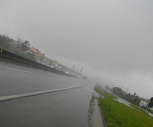 それでも、この雨は山の上だからだろう、山を降りれば天気も変わるさと、自分を励まし、前へ進む。70kmを過ぎたところから急に下り坂になり、高度800mから一気に40mくらいまで降りた。雨の下り道って結構怖いんですよ。そして、必要以上にブレーキをかけまくって降りるので、ブレーキシューの減りが早い。クリチバ到着前にテント泊したガソリンスタンドで、取り替えたブレーキシューだったのだが、この坂下りで早くも金属部分が顔を覗かせるほど磨り減ってしまった。う~ん・・・