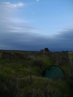ということで、Rochaまで後20kmというところまで走って、農場脇でテントを張り、本日は、ここでテント泊。テントの中でパンデイロの練習をして、夜が更けていく・・・