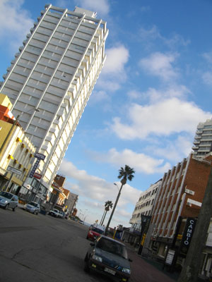 今日はゆっくり朝食。ん、出発しないのかって?ええ、今日は一日Punta del Esteでゆっくりすることにしたんです。というのも、昨日の夜、街をブラブラしていたらカメラ屋を発見。で、閉店間際の店内に入ってみたところ、SANYOのXactiが置いてありまして。が、残念ながら縦グリップ型ではなく、横型。縦グリップ型だったら即買いだったのになぁ、と思って宿に帰ってネットで調べていたら、Xactiの横型モデルSH-11って、メッチャ使いやすそうじゃないですか。ボディは軽量コンパクトだし、サブRECボタンがあるので、グリップ持ちもできる。さらに、ビデオ撮影時も、f=35mm相当の広角。こ、これはSH-11だったら買ってもいいかも、と先日のBloggieに続き、物欲が刺激されてしまい、この際ビデオを買い換えてしまおうと思ったんです。