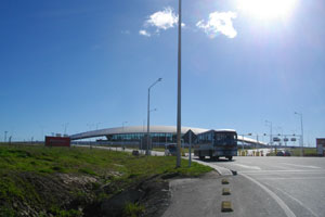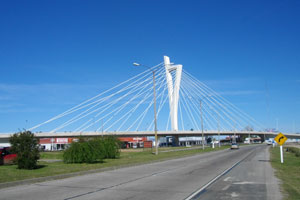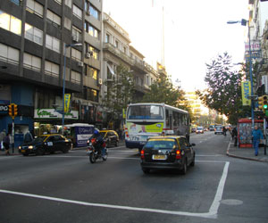 さて、モンテビデオに近づくにつれて、次第に交通量が増えてきた。そして、80kmほど走ったあたりから、すでに都会の雰囲気が・・・道路から路肩がなくなり、路線バスがガンガン走り始める。うぬぬ・・・こういう状況、自転車には辛いのですよ。幸いなことに、道路の脇に歩行者用道が作られていたので、そこを走ることにしたのですが、道はガタガタ。しかも、ずっと続いているわけではなく、ところどころ設けられているだけ。車道にでたり、歩行者道を走ったり・・・このジグザグ走法は、返って危険なのでは?と思い始めたところ、バス専用レーンがある道に出た。最初は走っていいものか?とおっかなびっくり走り始めたバス専用レーンであったのだが、そんなに頻繁にバスが通るわけでもないし、たまに通るバスも自転車をよけてくれるという親切っぷりだったので、ここはずうずうしく、バス専用レーンを走ることに。
