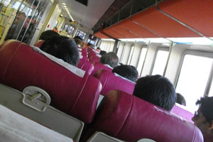 で、イミグレを抜けた後、待合室でしばし待つ。なにやらアナウンスが流れた途端に、待合室の人たちが動き始めたので、オイラもその人たちの流れにひっついて移動。流れはオイラタ達の乗るフェリーに続いていました。