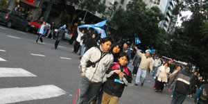 すごい盛り上がり。そして、その盛り上がりのまま後半戦終了。メヒコに1点返されたものの、3対1でアルゼンチン勝利。で・・・終わった後、街はスゴイコトに。車はクラクション鳴らしまくって走るわ、街の通りは、旗を振りながら大声で歌をうたう人たちで溢れるわ・・・なんかある程度の分別はあるみたいで、暴動っぽくはならないんだけど、ブエノスの日曜日の夕暮れは大盛り上がりとなったのでした。