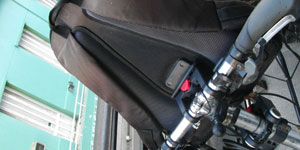 キックスタンド交換の後は、フロントバックを取り付けるためにつけている、KLICKfixのフロントアタッチメントの交換。これ、実は、北米を走っていたころから、バッグが落ちないようにロックする可動部が壊れていたんです。ですが、とりあえず、バッグをひっかけて取り付けることはできるので、まぁ、この状態でもいいか、と使い続けてきたのですが、ブラジルのボニートでの横転事故で、引っ掛ける部分が破損してしまい(あの時、自転車は無傷だと思っていたのですが、この部分だけが壊れてしまっていたんです)、バッグをひっかけられなくなってしまってまして。ボニート以降は、自転車の突起にバッグの取付金具を無理やりひっかけてきたんです。そんな状態でこのまま走っていると、バッグの取付金具が途中で壊れてしまうのではないかという危惧があり、なんとかしなきゃと思っていたところでして。これも、今回、新しいアタッチメントに交換することにしたのです。この交換作業も、問題なく終了・・・と思いきや、早速フロントバックを取り付けてみたら、取付金具が曲がってしまっていて、スムーズにアタッチメントに装着されない、という事態発生。しばらく歪み部分をしごいて、補正して、なんとか取り付けられたものの・・・歪みは残っていて、若干不安を残す取り付け状態。う~ん、まぁしばらく正しい状態で使っていたら、きっと元に戻るでしょう。