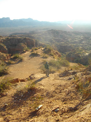 園内に入って、未舗装になった道を自転車で走る。6kmほど走ると、キャンプ地らしい場所が見えてきた。ん~、しかし誰もいないな・・・そう、観光客はおろか、園内を管理している人すらいない。もう完全に放任主義状態。適当な場所にテントを張らせてもらい、まず、洗濯開始。胡麻油臭にまみれたバック類を洗いまして。気分的にもすっきりしたところで、Quijadasを散策開始。放任主義な園内ですが、一応、フリーで来た観光客が歩ける場所は決まってまして。一応コースとなっているトレッキングルートを歩き始める。と、最初の岩場を越えたところで見えてきた風景が・・・