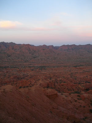 あぁ、この寒ささえなければ、ここ<Sirre de las Quijadas>にあと2、3日は滞在したいところなんだが・・・もう、この朝の寒さが耐えられません。今日、出発することにしよう!と決心したため、まぁ、最初で最後となるQuijadasの朝日風景。しっかり目に焼き付けておかねばと、凍えそうな寒さの中、荒野の見える高台へと向かう。