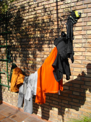 シャワーを浴びて、すっきりしていたら、オーナーのアリエルおじさんが「洗濯物があるんだったら、洗濯機をまわすぞ」と声をかけてきてくれた。「えぇ~、ホントッスか?タダでいいんですか?」と甘えるオイラ。ブエノスから2週間、ほとんど着の身着のままだった衣類は、さすがに洗わなきゃなぁって思っていたところだったんです。いやぁ、文明の利器を使わせてもらえるとは。お言葉に甘え、大量の衣類を一気に洗わせてもらうことにしたのでした・・・が、調子に乗って、洗いすぎた。着る物がなくて・・・寒い・・・