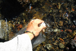 途中、川のせせらぎが聞こえたので、一休みがてら、川岸へ。そして、残り少なくなってきたプラティパス水筒に水を補給。この辺の水、全然キレイで、そのままガブガブ飲めマス。ただ、あまりにも水が冷たく、飲みすぎると、お腹がキューとしてきますので注意。そうそう、このところ、水を全然買ってない。パラグアイに入る前までは、飲み水は、ほぼスーパーで買ってきていたのに。ある時点で「水道水、のめるじゃん」と気付いて以来、水は買わなくなっちゃいました。宿では、水道水、移動中でも、トイレの手洗い場で、水を補給。そして、これからは、川の水で・・・って感じですかな。