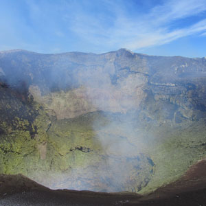 そんなこんな、ようやく山頂へ到着。目の前にオドロオドロしい色に変色したクレーターが見えたときには、感動というより、なんだかホッとしました。あぁ、無事辿り着けてよかった、という安堵感なのか。