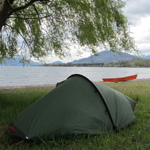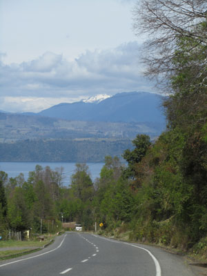 まだまだ居ればいいのに、という<Monkey Puzzle>のオーナー、ビビの誘いを振り切って、出発。ビジャリカ湖畔を横手に見ながら、ビジャリカの街を目指す。舗装道路だったせいもあり、アッという間にビジャリカに到着。と、この街では特にやることもないので、スルー。続いて、リカン・レイという町を目指して走り続けるも、ここもずっと舗装道路だったために、リカン・レイにもアッという間に到着。この町も、湖沿いの風光明媚な町というだけらしいので、湖を見ながら走り抜けることに。で、その湖、カラフケン湖畔を走っていたら、湖畔沿いにテントマークの看板が置かれたビーチを発見。せっかく湖の多い地帯を走っているんだから、一度くらい湖沿いにテント泊してみるか・・・と、通りすがりの地元のオジちゃんに聞いたところ、もちろん、この場所はテントOKだとのこと。いつもは未公認のテン場ですが、今日は、公認。公認なら、明るいうちに張っちゃっても、いいだろうということで、時刻はまだ14時半くらいだったのだが、今日はここにテントを張ることにしたのであった。