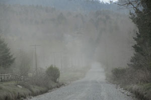 疲れを癒し、颯爽と・・・といいたいところですが、ここからの道が大変だった。道はさらに大粒の石を含んだ砂利道となり、しかも登り坂が続く。せっかく温泉で汗を流したというのに、また汗だく・・・そして、車が通る度に、モウモウと覆われる砂煙に巻かれて、体中ほこりまみれ。あぁ、ウンザリします、湖沿いで景観は抜群なんだけどねぇ・・・この砂利道が・・・