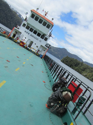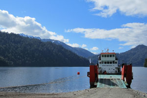 ということで、本日、プエルト・フイを出発することに。といっても、実は、ここから先は、Pirihueico湖が、ド~ンと横たわっていて道がないんです。先へ進むには、湖の上を通るしかない。ええ、フェリーに乗って進むしかないんですよ。で、このフェリー、今のオフシーズンには13時出航の一日一便しかない。なので、フェリー待ちの午前中は、プエルト・フイの村をブラブラして時間をつぶす。村の背後にそびえるChosnuenco火山はあいにく雲がかかっていて山頂が見えない。ちなみに、このChosunenco火山は、フリーで登山できるらしいです。ビジャリカに登ったオイラとしては、もう雪山火山登山はしばらくいいやって感じなのでパスですが・・・う~む、でも雪山にフリー登山って危険すぎないか?