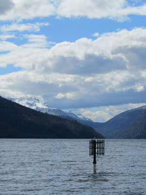 プエルト・フイ、湖畔にポツリとある小さな村でして。雰囲気いいトコロだよぉ、と聞いていたので、なんだったら2泊くらいしていこうかと思っていたのですが・・・確かに、いい場所です。村には70軒くらいしか家はなく、ただ、自然が雄大にそこに横たわっているだけの素敵な場所。あぁ、確かにいい場所なんですが、何もないという贅沢さが、今のオイラには重過ぎる。ただ雄大な景色だけがそこにある、という場所とどう向き合えばいいのか分からない。いや、奇岩みたいなモノがゴロゴロしている場所だったら、テンションあがって時間があっという間に経つんですが、静かに山と湖が存在しているって場所は、なんだか時間をもてあそんでしまいまして。いや、何もないってことに戸惑っているんじゃなくて、このところ、湖ばかり見てきているため、感覚が慣れてしまったからなのかもしれない・・・なんか、微妙にワクワクしてこない。