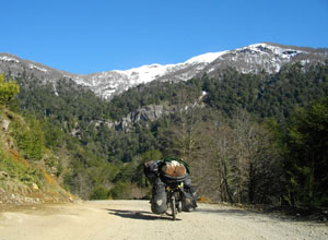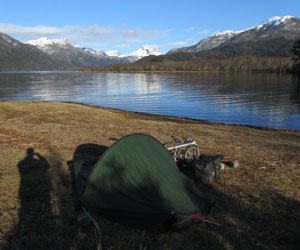 舗装道路を快適に走っていると、右手にナウエルウアピ湖が見えてきた。今まで見てきた湖の中では一番デカイ。目的地である、ビジャ・ラ・アンゴストゥーラの町はこの湖の畔にあり、湖の対岸には、有名なサン・カルロス・デ・バリローチェがある。ちなみに、今回、アルゼンチン側を走るのは、ビジャ・ラ・アンゴストゥーラまでで終了。バリローチェまでは行かず、再びチリへと走る予定なのだ。というのも、バリローチェまで行っちゃうと、船でしかチリに戻れなくなっちゃうんです。で、この船旅が結構高い。チャリダー向け価格なるものもあるみたいなんだけど、80ドルくらいするらしくて。しかも、サン・マルティン、ビジャ・ラ・アンゴストゥーラに行ったら、南米のスイス感は満喫できてしまうので、あえて船に乗ってチリに抜ける目的でもないのであれば、わざわざバリローチェまでいくことはない、ってスコットにも言われてて。