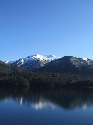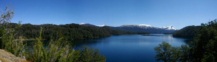 まぁ、とにかくビジャ・ラ・アンゴストゥーラへ向かおうと走っていると、ナウエルウアピ湖のミラドール(展望台)を発見。で、湖を一望すべく、一番眺めがよさそうな場所へ行こうとしたら・・・向こうから、どこかで見たオジちゃんが手を振って向かってくるではないですか。「ヨシ!」。おお、プエルト・フイから乗ったフェリーでご一緒したオジちゃんです。そして、オバ様軍団もご一緒でした。「あらら、こんなところでまた再会できるなんてね」と、キュートなオバ様から、再会を祝って、リンゴとクラッカーとキャラメルをいただきちゃいました。すんません、ゴチになります。