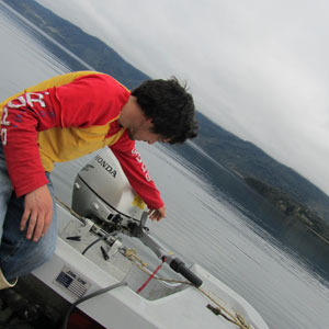 エランという青年に連れて行ってもらうことになり、10時に湖畔で待ち合わせ。久しぶりに出したボートだからなのか、なかなかエンジンがかからず。大丈夫なのか?ひょっとして手漕ぎで向かうなんてことになるのではないか?と不安が深まったところで、無事エンジンがかかる。どうやら、バッテリーをつなげてすぐエンジンをふかそうとしたのがまずかったらしい。5分くらい充電させてから、かけるのがコツのようだ・・・って、それ基本じゃないですか、大丈夫か、エラン。