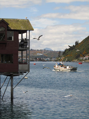 さて、プエルト・モンといえば、漁港として有名な場所。実はビーニャで買えるサーモンも、ここ、プエルト・モンから運ばれてきているという話。ということで、プエルト・モンに行ったら、海鮮三昧ラウンド・ツーだ!とワクワクして訪れた場所なのですよ。