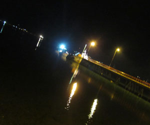 パソコンをしまって、真っ暗な中、物置に置かせてもらっているファニーバニーの元へ。こんな夜中に移動のため動き出すのは・・・久々・・・いや、初めてかも???。自転車にまたがり、22時に来いと言われている、チケットオフィスへ。チャイテン行きの船は、桟橋のところにはおらず、相変わらず沖合いに停船している。「時間になったらアレが桟橋のところにくるんですか?」と聞いてみると、「いや、小型船に乗って、あそこまで行くんだ」とのこと。ということで、桟橋に停船している小型船に連れて行かれ、自転車ごと小型船へ。オイラ以外に2人ほどの客を乗せ、小型船が出航。客船へ向かう。で、客船の脇にある扉の下に小型船をつけ、そのまま人と荷物を扉から入れるのだが・・・バックパック程度の荷物なら容易に扉に入ることができるのだが、さすがに自転車となると・・・大変。桟橋からダイレクトに乗船できると思っていたのに、今回は非常に面倒な乗船になってしまった。船のお兄さん3人ほどに手伝ってもらい、なんとかファニーバニーを船の中へ。