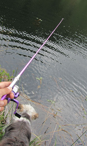 釣竿と餌にするハムを持って、川へ。と、遊び仲間を見つけたと思ったのか、宿の飼い犬のポチ(仮称)がオイラの後をついてくる。ポチを横に従え、ノンビリ釣り糸をたらす。が、川原で糸をたらしたり、橋の上から糸をたらしたり、といろいろポイントを変えて探ってみるも、まったく当たる気配がない。そこへ、地元のオジちゃんが通りかかり、「向こうにある池の方が釣れるよ」とアドバイス。むむむ、では移動、と池に向かうことに。私有地らしく、柵があったのだが、ちょいと乗り越えてお邪魔することにして、池脇へ。と、基本的にはほったらかしの自然池。周囲は、踏み固めてある場所なんてなく、足を踏み入れると、ズブズブと沈んでしまい、靴が泥だらけになるほどの泥濘地帯。とにかく、池脇までいかなくては、釣り糸をたらすこともできないので、そこに生えている木々の根をつたいつつ、なんとか池脇へと辿り着く。まったく物音のしない、静かな池に、投げ入れた釣り糸の音だけが響く・・・はずが、足元で、バシャバシャとうるさい水音がするではないですか・・・ポチです。普段遊びに来ない池に来たことで興奮しちゃっているのか、池に飛び込み、あがってきては体をブルブルして水をはじき、再び池に飛び込む、と楽しんじゃっている。いやいや、そんなにうるさくしちゃうと、かかる魚もかかんなくなっちゃうから・・・と、「ポチ!」と叱るも、オイラが勝手につけたニックネームに反応するわけもなく、ひたすら、オイラの釣りの邪魔をし続ける、ポチであった。
