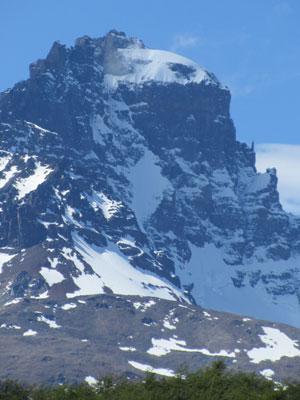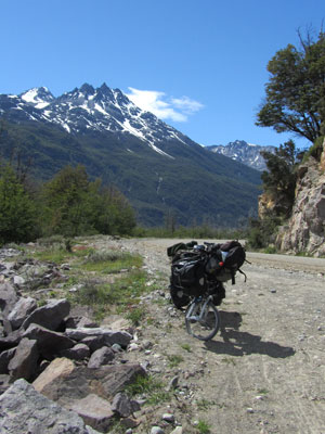 夕刻、ビジャ・セロ・カスティージョの町に到着。早速町の入り口にあったツーリスト・インフォメージョンのオフィスで、セロ・カスティージョトレッキング情報を聞くも、「今、雪が多くて登れないよ。12月に入ってからじゃないと・・・」とのこと。もう初夏だというこの時期でも、まだ雪のため、出来ないアクティビティがあるのかぁ・・・やっぱりパタゴニアは12月以降じゃないと、存分に楽しめないのかぁ・・・ショック。セロ・カスティージョをトレッキングするために、こっちに戻ってきたのに・・・しょうがないので、宿情報を聞き、町の宿へ向かう。と、途中で、「宿を探しているの?うちは安いよ」と、チャリダー姿を見て、声をかけてくれたオバさんについてって、オバさんの宿に案内してもらう。シャワーはお湯なしだけど、キッチンも使えるし、部屋も広いし、まぁいいかと、ここに決める。そして、オバさんに、「ツーリストインフォでは、今雪が多くてセロ・カスティージョトレッキングできないみたいなんですけど」というと、「あら、歩けるわよ。ちょっと待って。地図を持ってきてあげるわ」と部屋の奥からトレッキングマップをひっぱりだしてきてくれた。ん?トレッキングできるのか。なら、明日行ってみることにしよう。