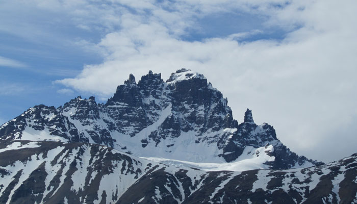 そして、二つ目の峠越えを果たしたところで、遠くにこれまた、オイラが惚れ込んだ、今のところ世界一好きな山、セロ・カスティージョの姿が見えてきた。コチラから走りながら向かうと、まず、山の背(?)が見えてきて、次第に、横姿、そして、正面左斜めからの姿が拝める。前回対峙した時には、右斜めからの姿しか拝んでいなかったんで、今回新たに見えたセロ・カスティージョの魅力的なフォルムに改めて惚れ直す。ん~、やっぱ、いい。素晴らしい山です、セロ・カスティージョ。