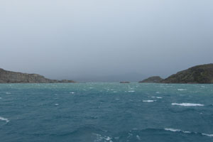セロ・カスティージョが雲に隠れて見えなくて、逆によかった。見えていたら、確実に未練に引きづられていたであろう。ビジャ・セロ・カスティージョの町を出ると、やはり延々上りが続いた。最初はがんばって漕いでいたものの、昨日・一昨日の疲れが残っており、しんどくなり、降りて押しながら進む始末。アウストラル街道の分岐点まで思ったより時間がかかり、この時点ですでに8時半ちょい前。ここからは下りがメインになって走りやすくなることは分かっていたものの、ちょいと急ぎ気味に進む。そのおかげで、9時半過ぎにはプエルト・イバーニェスに到着できた。