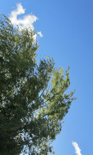 パタゴニアは暴風地域だ、と聞いていたのだが、コイアイケあたりまでは、そんなに風が気になることはなかった。が、ここ、チレチコに着いてから、すごく風が気になる。普通に歩いていても、常に風が体にあたってくるし、強い西風を受け、木々は全て東方向へとひん曲がってのびている。