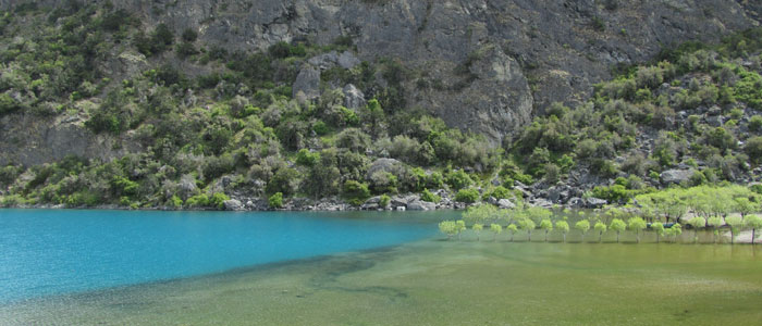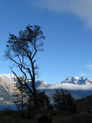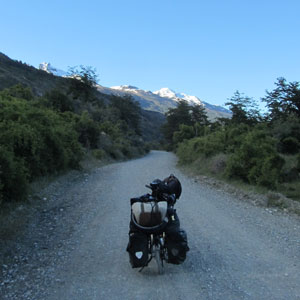さてさて、この道、ほとんど車の通りがなく、ひたすら孤独に自転車をこいでいるのだが、久しぶりに、前方から車が来た。小型のバンとすれ違う。ん、車のサイドに書かれている会社のロゴ、どこかで見たことがあるような・・・あれっ、リオ・トランキーロに向かう時に乗っていったバスではないですか。バスのおじちゃんも、オイラに気付いた様子で、すれ違って、すぐに、バスが止まった。窓が開いたので、オイラが引き返してバスに近寄る。「リオ・トランキーロに行ったんじゃないのか?」とおじさん。「ええ。で、またコクランに向かうところなんです」と答えると「コクランに着くのは明日だろう?今日はチレチコに戻るけど、明日、朝、コクランに向かうから、次の町で待ってな。乗せていくぞ」と。「いや、今回は、自転車で行きたいんで」と、せっかくの申し出でしたが、丁重にお断り。いやぁ、ねぇ、アウストラル街道は、自転車で走らないともったいないんで。