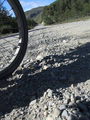 コクランも悩んだ挙句、結局今日出発することに。お昼ごはん用に昨晩作っておいたオムスビをカバンに詰め、宿のおばちゃんに見送られ、コクラン出発。コクランの町を出ると、これまで以上にひどい砂利砂利の道が・・・今日も大変な道が続くか、と覚悟を決め、ひたすら前へ進むのであった。